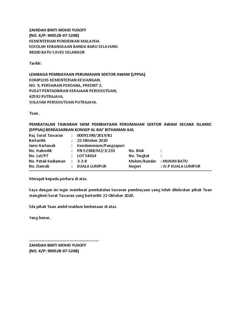 Surat Pembatalan Pinjaman Lppsa Pdf